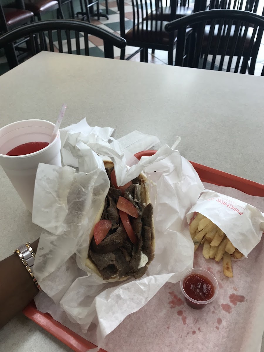 The owner here is super friendly and let us in even though the sign said "drive through only". The gyros are delicious, although the portion sizes were more modest than other gyro shops.